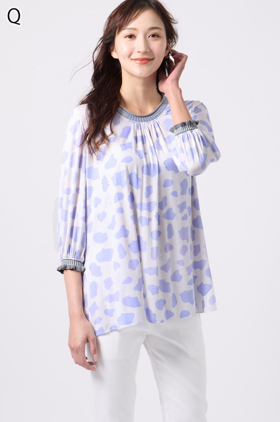 No.625538 【15号・11号】オシャレに体型カバー 小花とロゴが可愛いAラインTシャツ