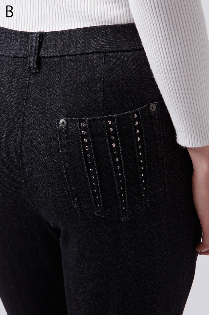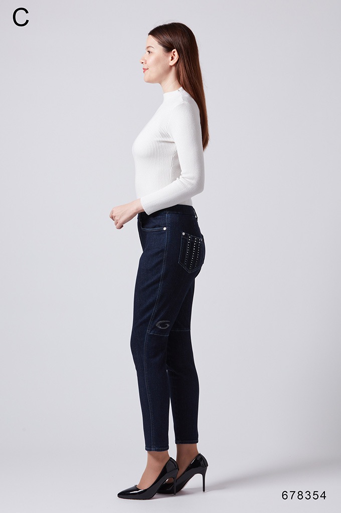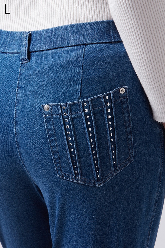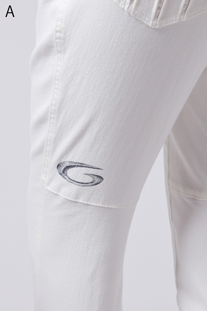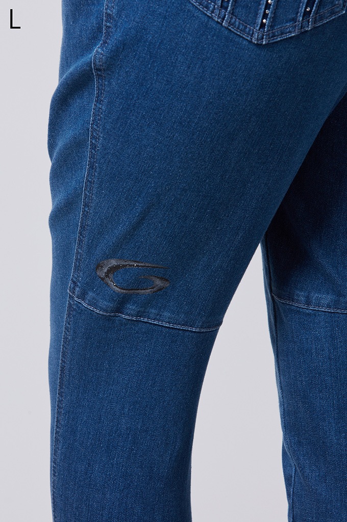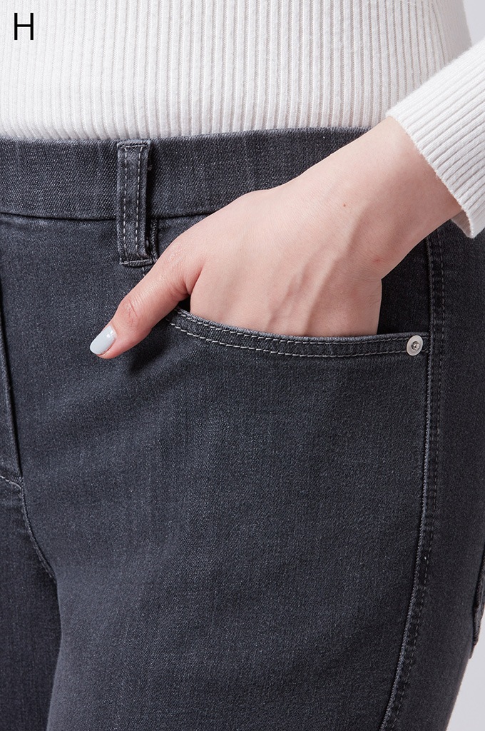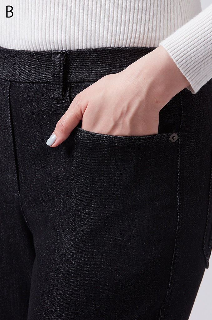 後ポケットに縦切替の共布挟み込みが立体感を演出します。