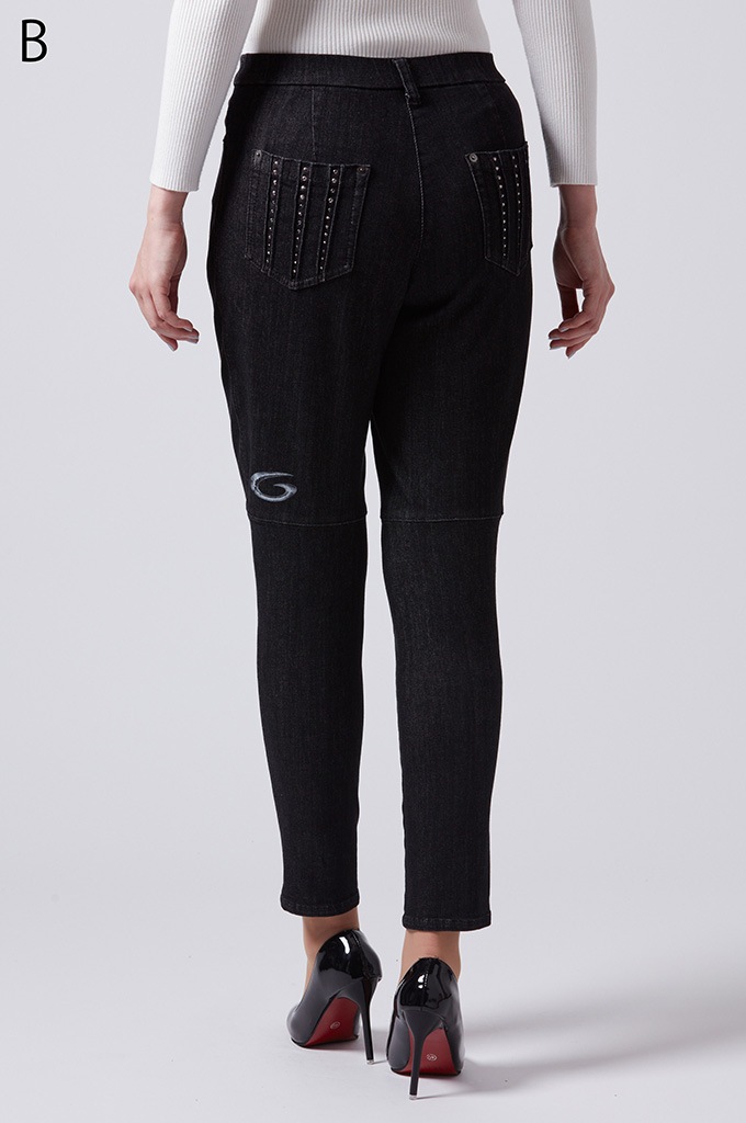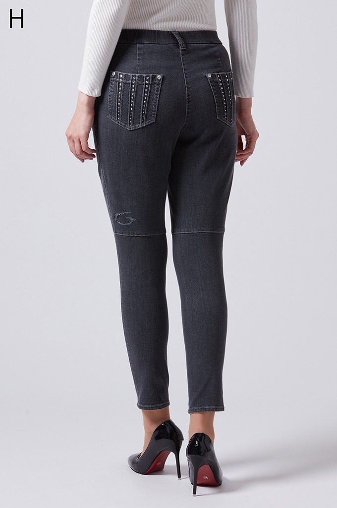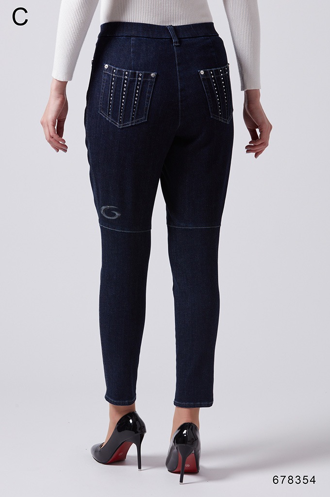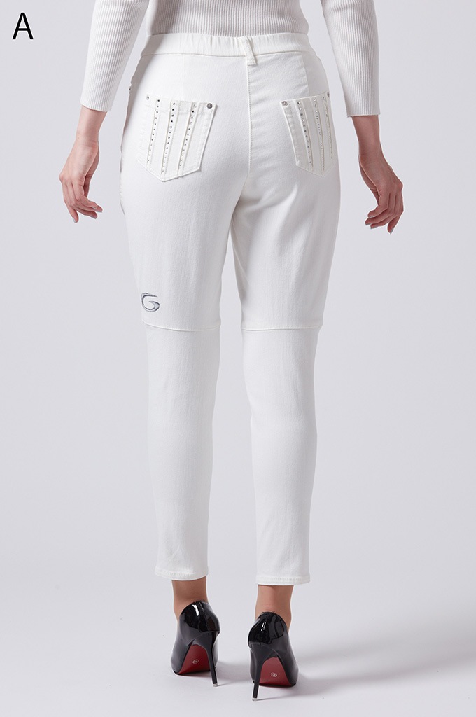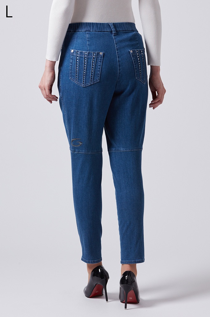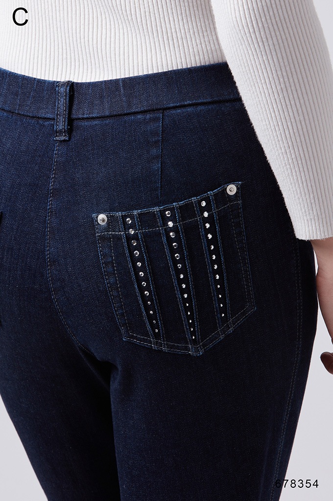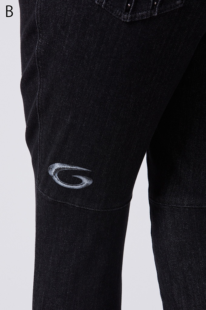 後ポケットに縦切替の共布挟み込みが立体感を演出します。