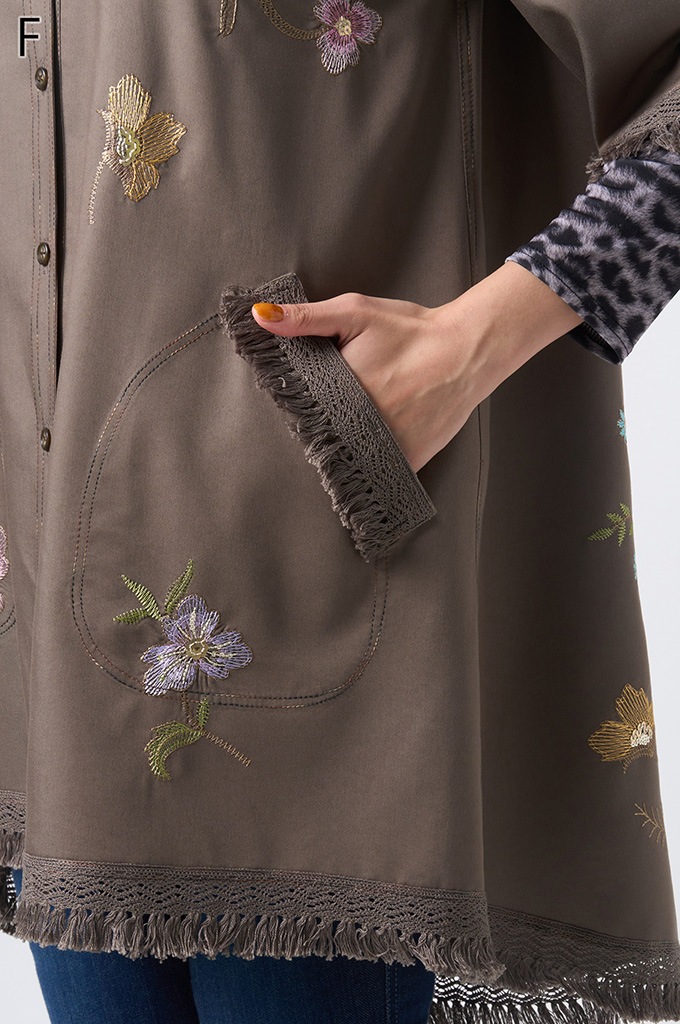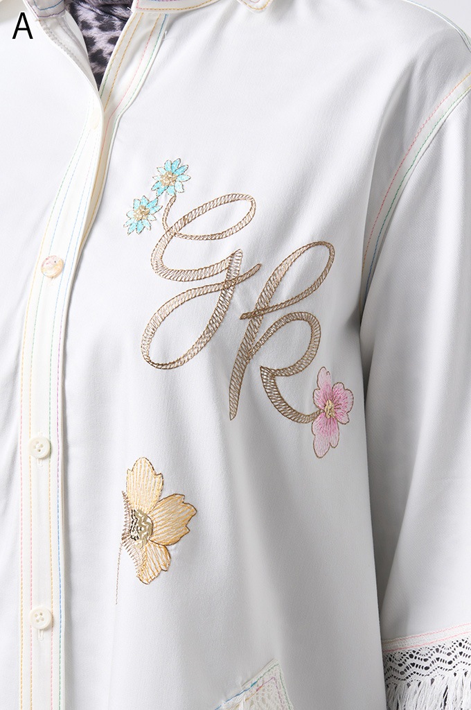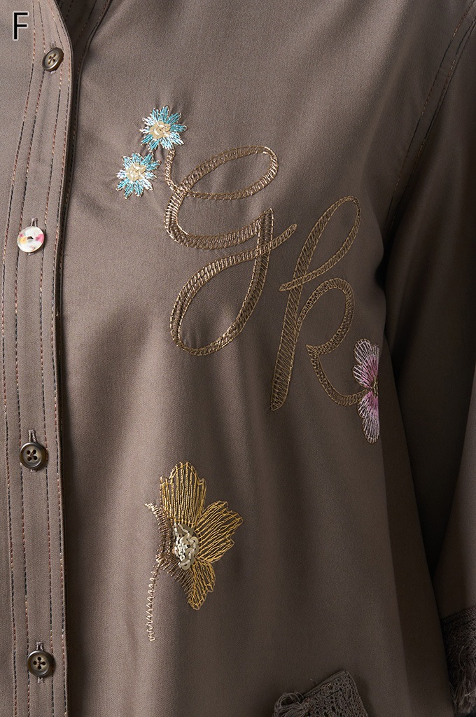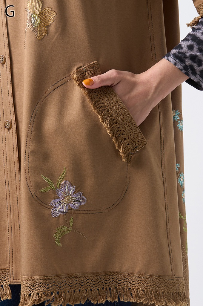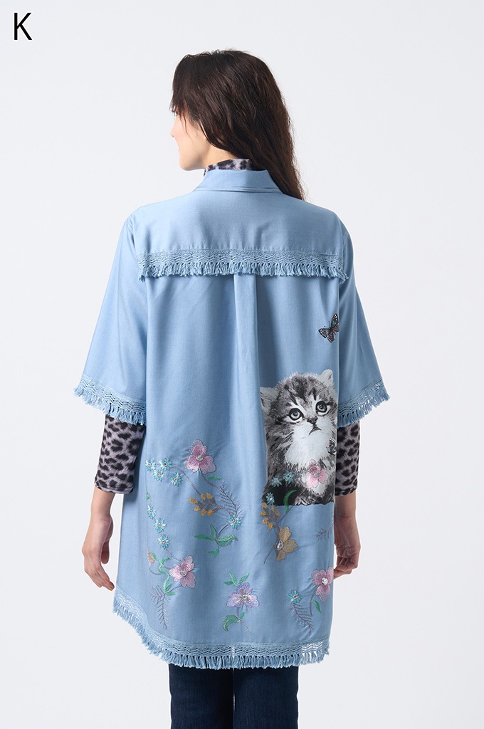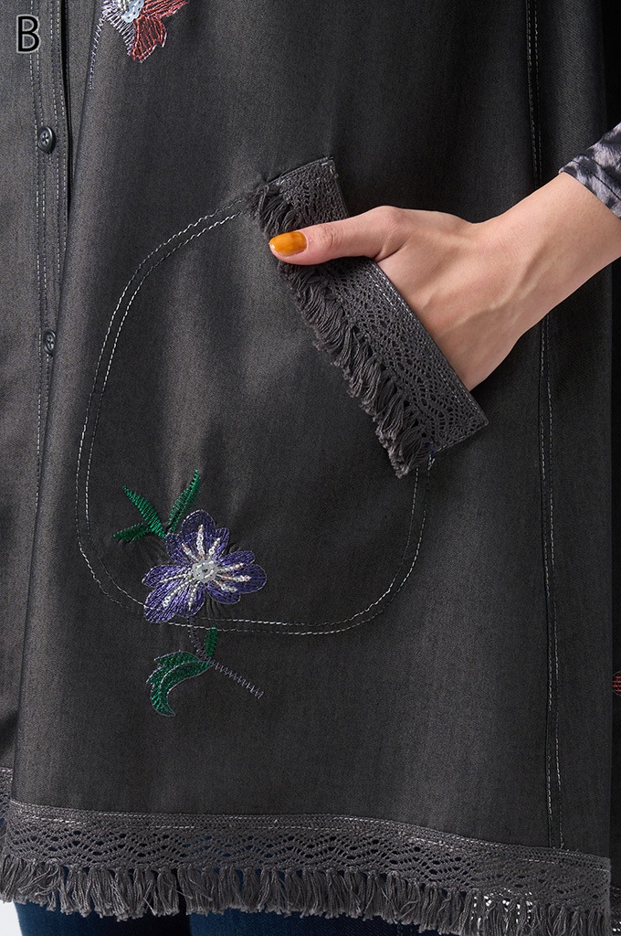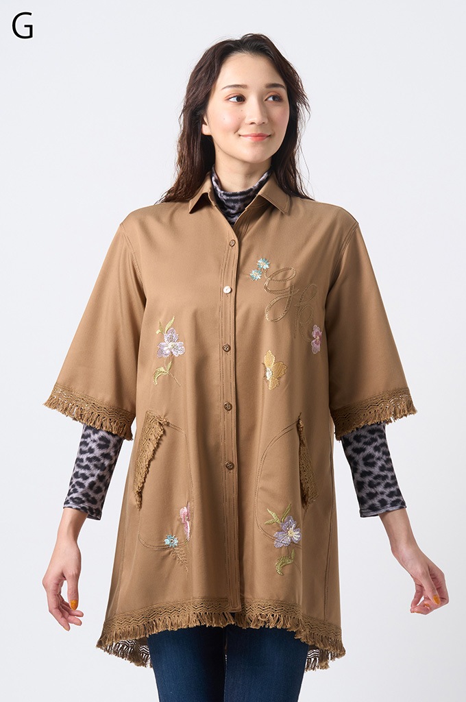 ソフトな風合いのデニム素材を使用し、女性らしさを引き立てる花とスパンコールの刺しゅうが魅力。