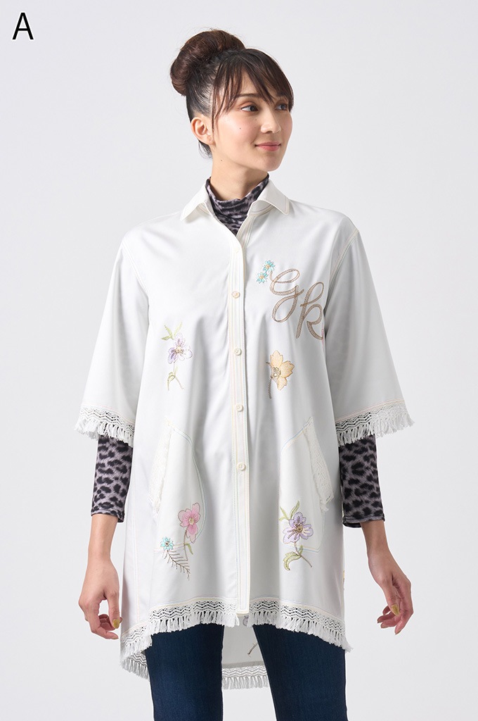 ※着丈、袖丈サイズに約4cmのレースフリンジがついています。バストサイズは+タックが入ります。