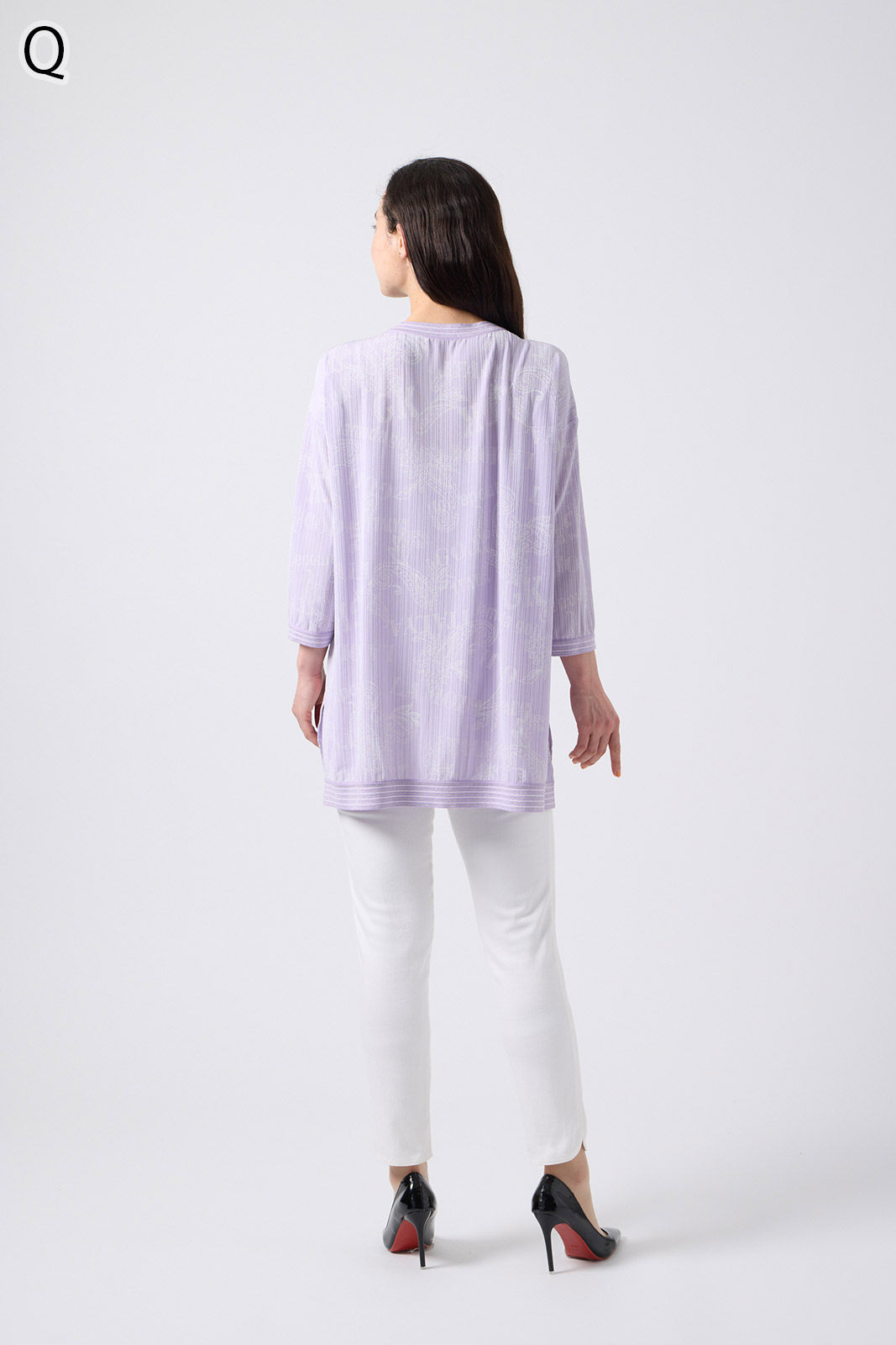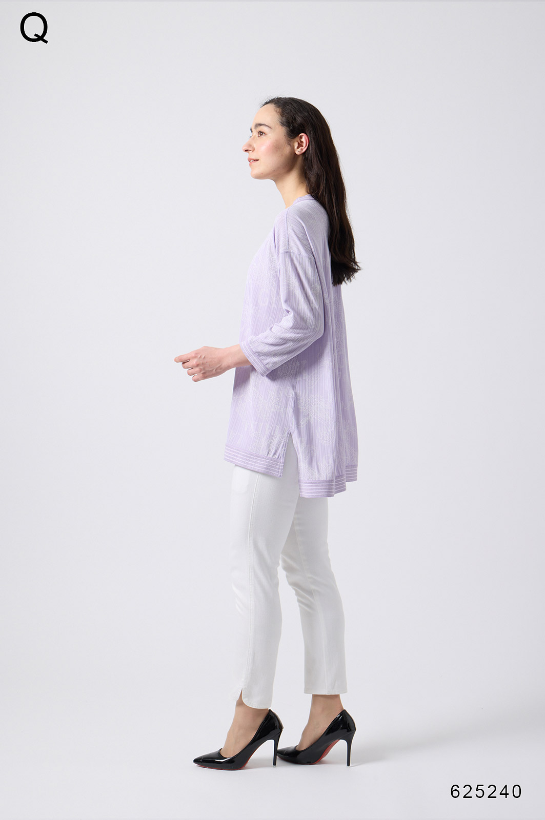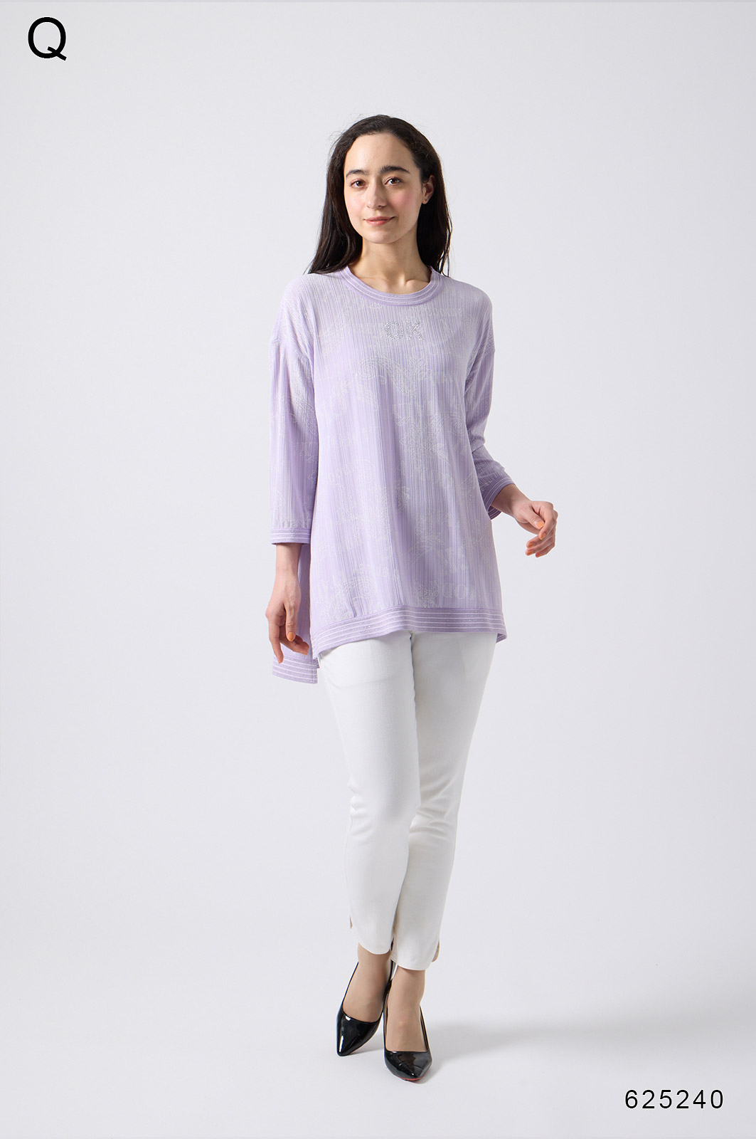 シンプルなボトムスと合わせるだけで、洗練されたスタイルが完成する一枚です。