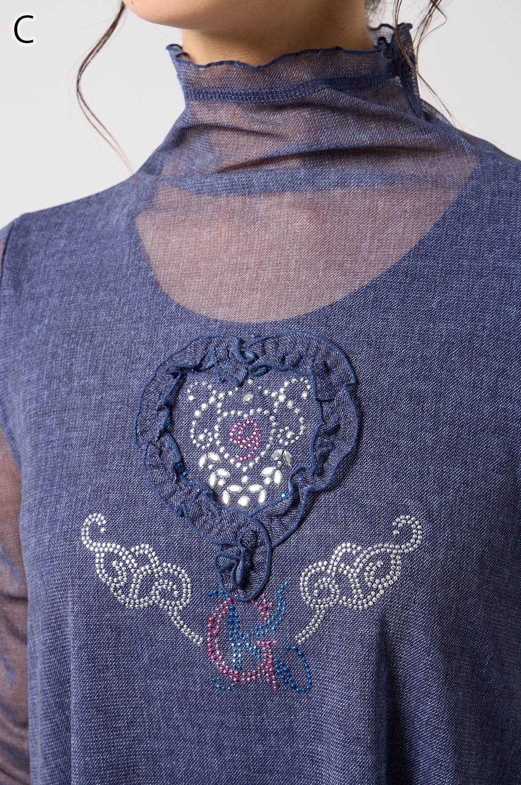 9号:肩幅36cm/着丈73.5cm/バスト100cm/袖丈51cm/袖幅31.5cmNo.625538 【15号・11号】オシャレに体型カバー 小花とロゴが可愛いAラインTシャツ